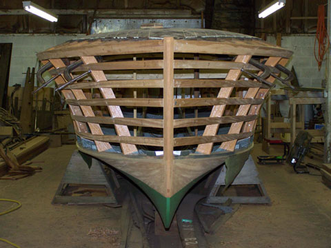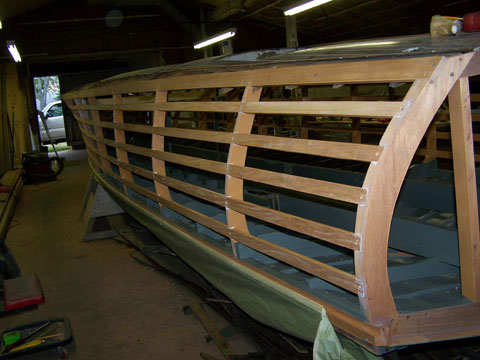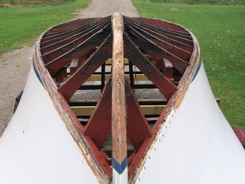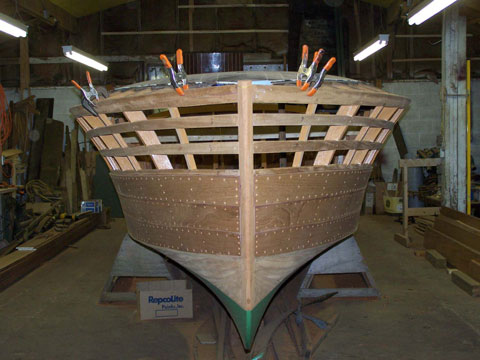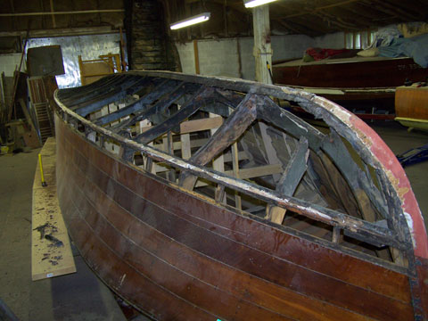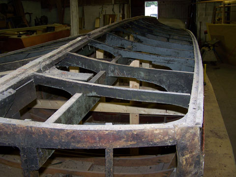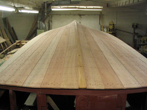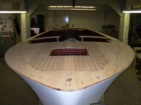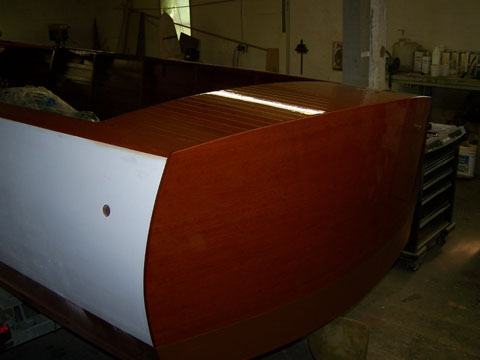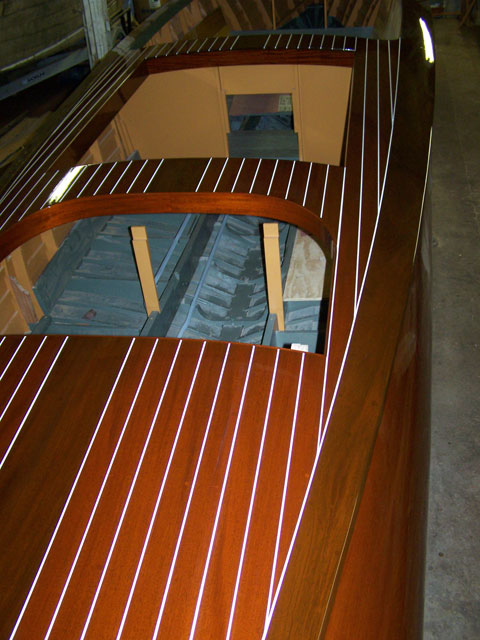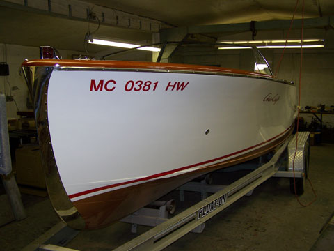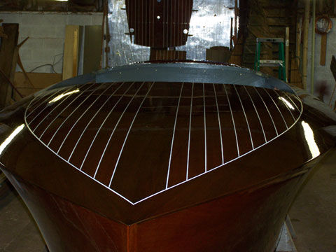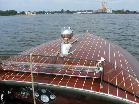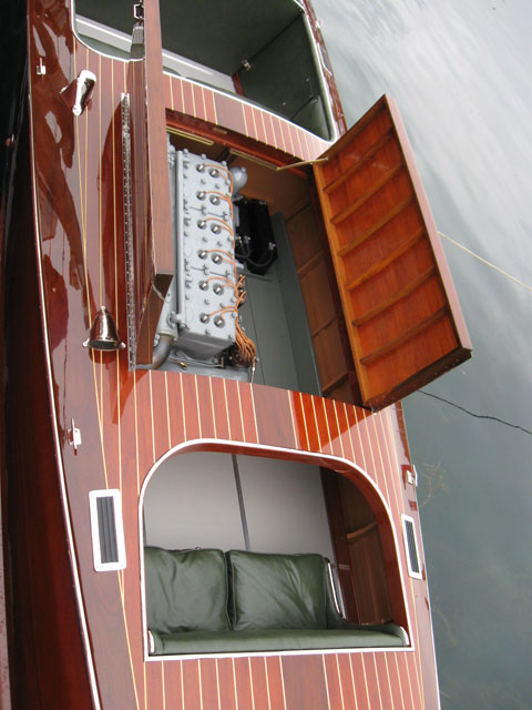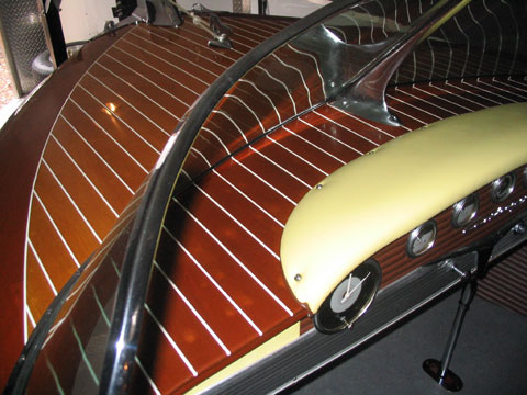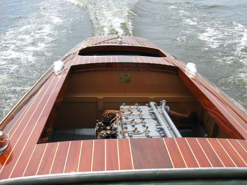 The characteristic and highly innovative Hacker bottom had concave sections the entire length of the boat—a departure from other bottom designs of the day from Chris-Craft and Gar Wood. This bottom shape gives the Hackercrafts an inspiring, solid feel in the water, along with great speed. The construction of the original Hackers had many refinements, from using rivets to fasten the planking to the intermediate frames, as well has using forgiving red cedar for the longitudinal, outer planking below the waterline, rather than hard mahogany.